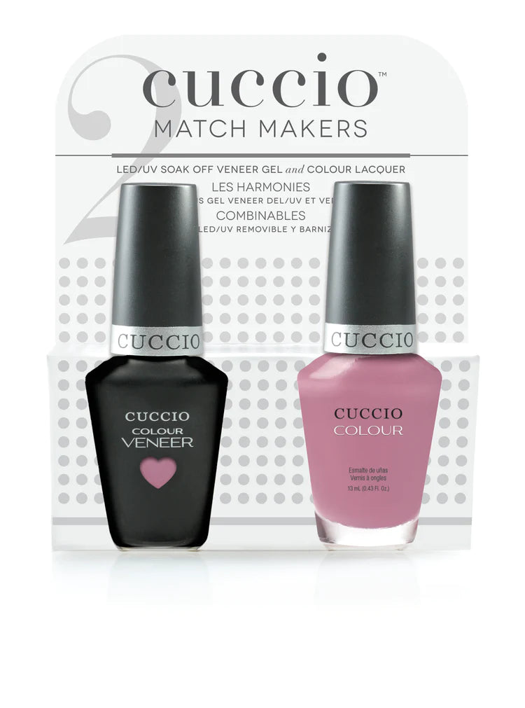 Cuccio presents Match Makers, a novel way to pair a trend-setting shade from our professional lacquer line with its matching counterpart from our leading Cuccio Colour Veneer Soak Off LED/UV Nail Colour range.