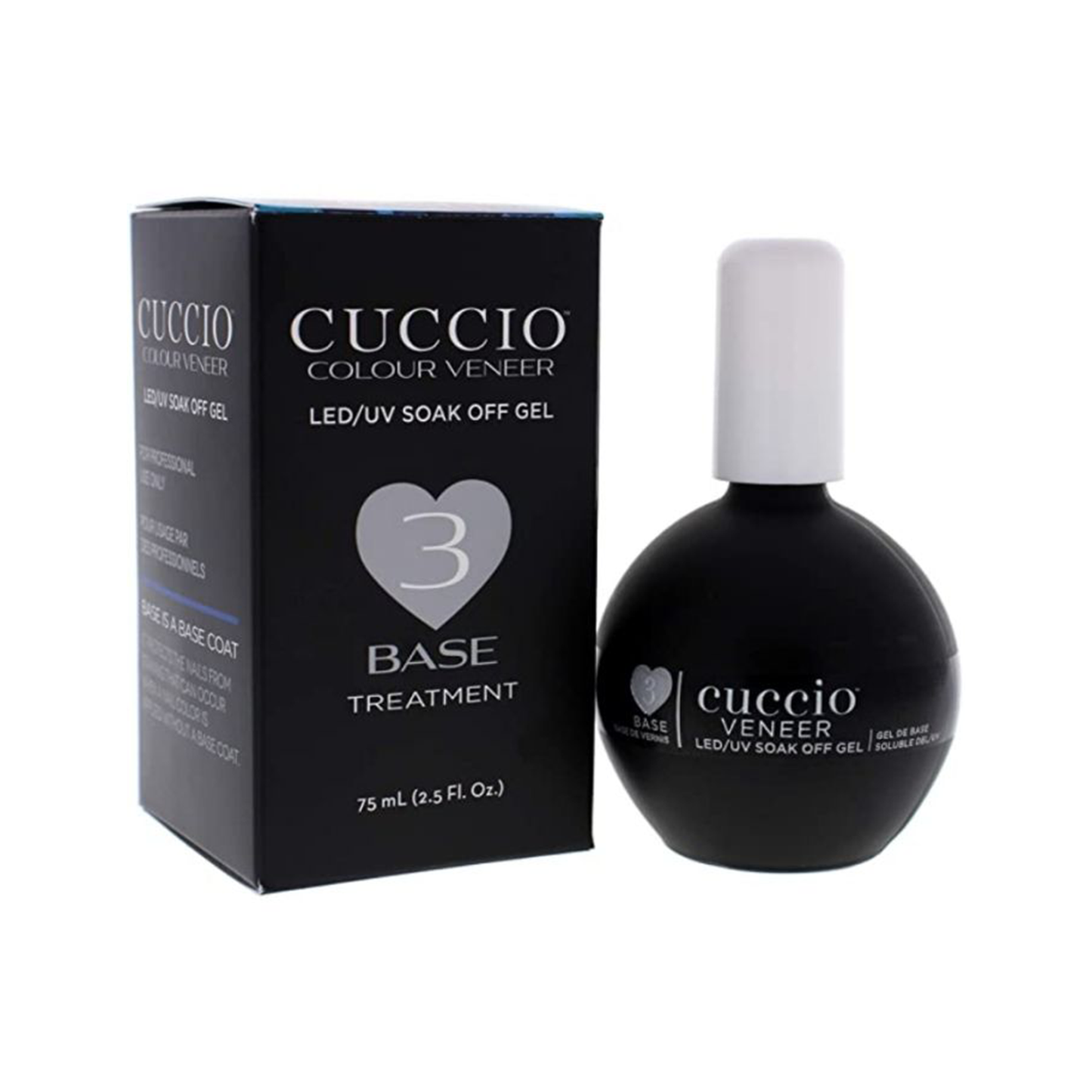 Cuccio Veneer Base Coat in a generous 75ml size, is an essential preparatory step before applying color.